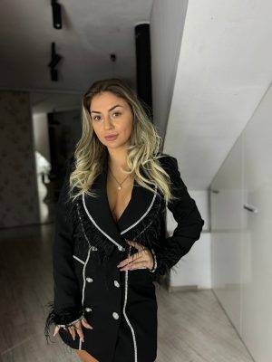 Rochie neagra midi cu nasturi aurii
